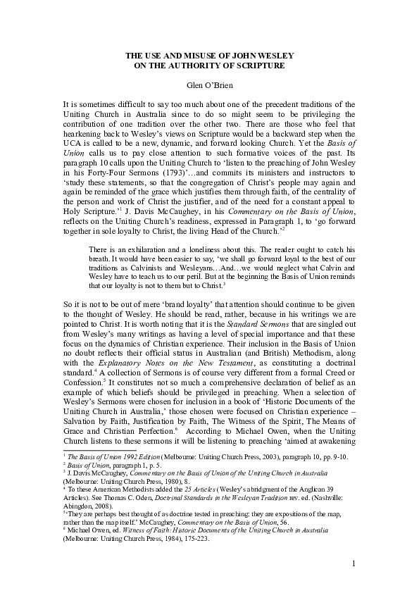 Doc The Use And Misuse Of John Wesley On The Authority Of Scripture Glen O Brien Academia Edu