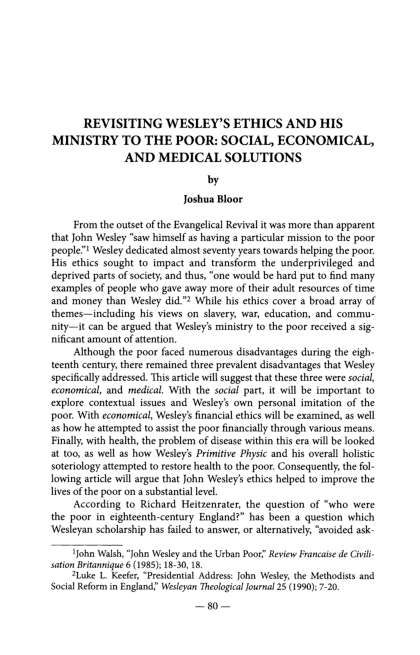 Pdf Revisiting Wesley S Ethics And His Ministry To The Poor Social Economical And Medical Solutions Joshua D A Bloor Academia Edu