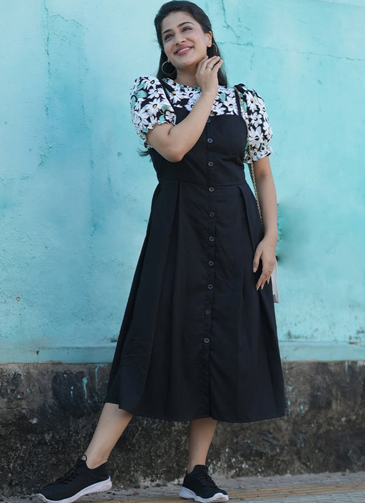 Buy Worldcare Women Fit Flare Black Dress Black Medium At Amazon In